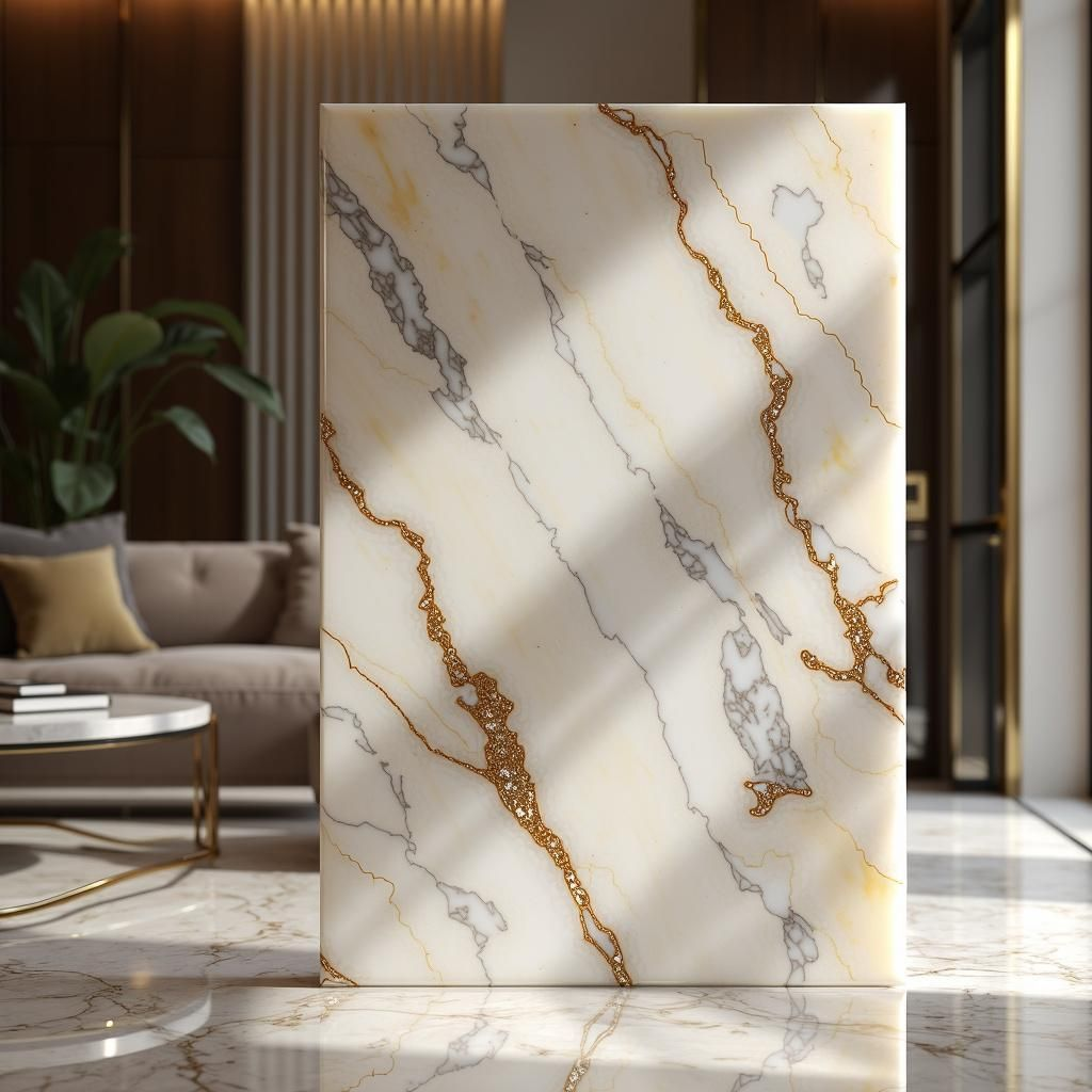 A cost-effective solution to real marble and onyx stone with an authentic appearance and increased fabrication capability, it offers a modern aesthetic with dynamic light transmission and fabrication ease. Transtones Alabaster has the texture and depth of real stone, but lighter weight and and excellent transmission quality.