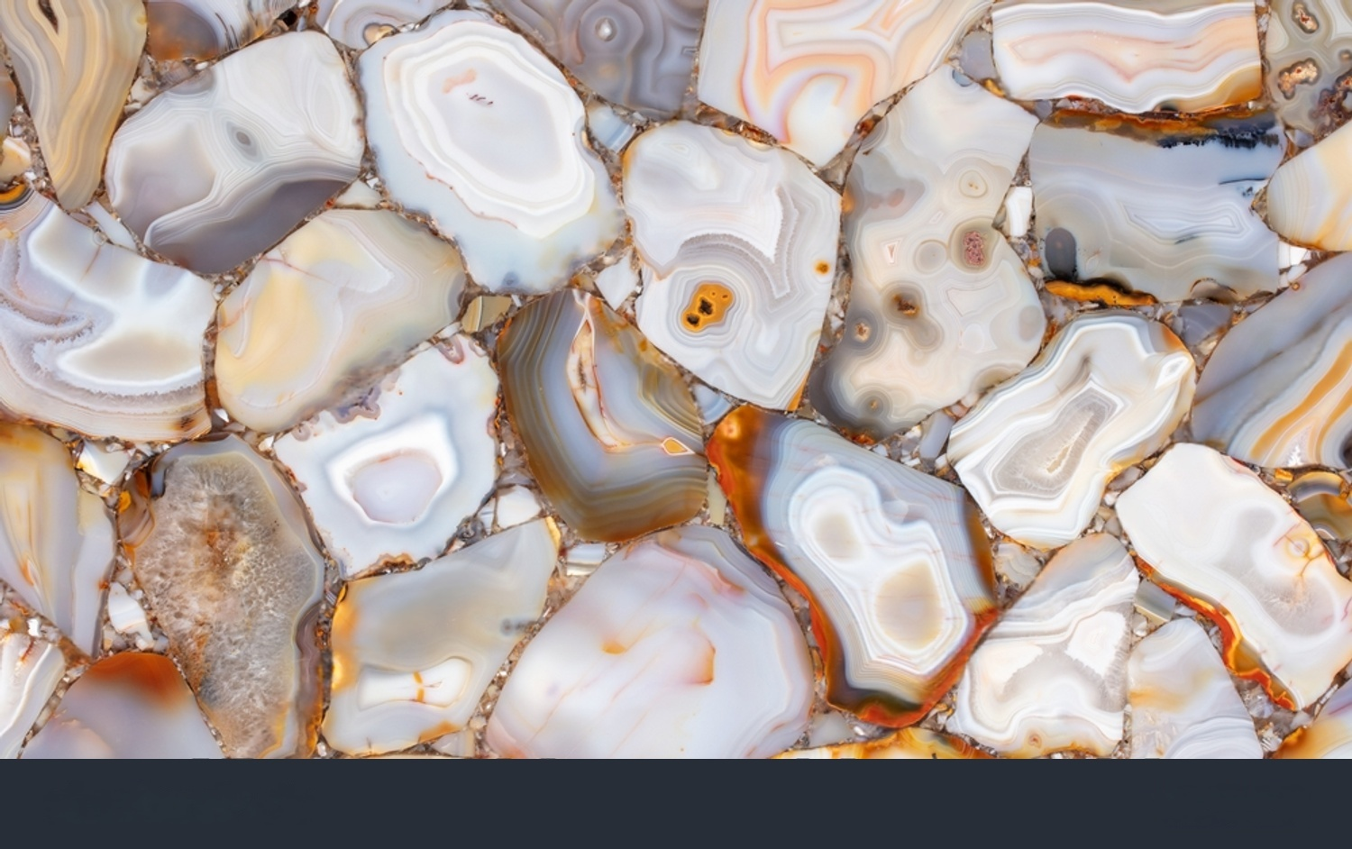 Individually cut and bound semi-precious stones in elegant had-made surfaces. Featuring unique colors and translucent surfaces, Agate will enhance the design of any luxurious interior.